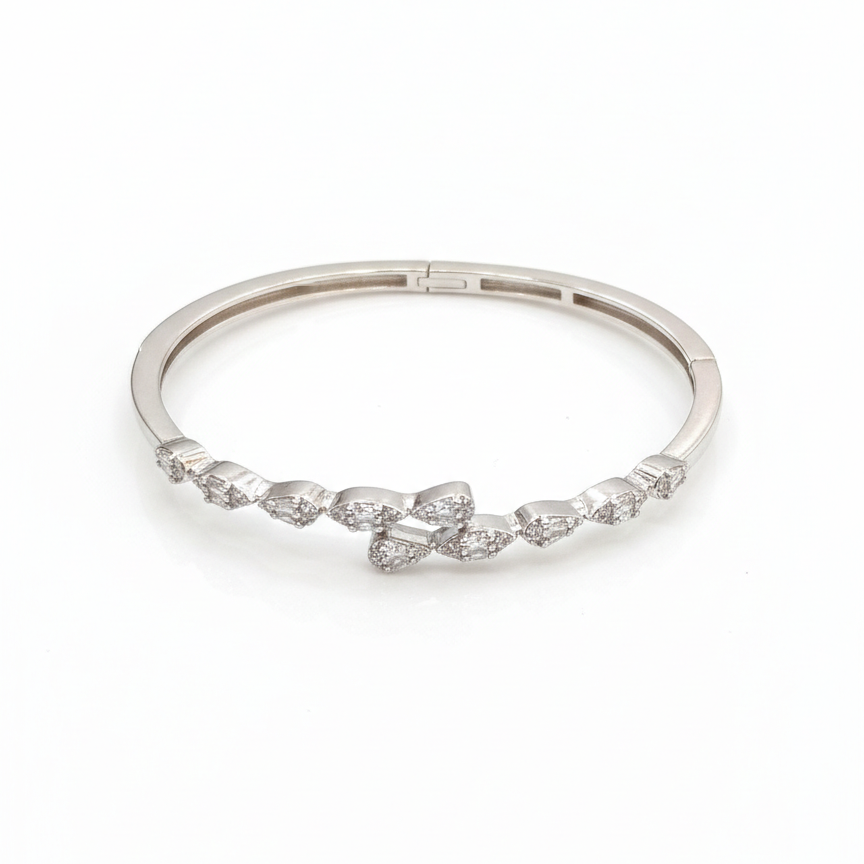 Featuring a delicate bypass design, the bracelet is adorned with a sequence of brilliant-cut teardrop zircons that catch the light from every angle. Its sleek, polished finish and secure clasp make it an ideal choice for both daily elegance and special celebrations.