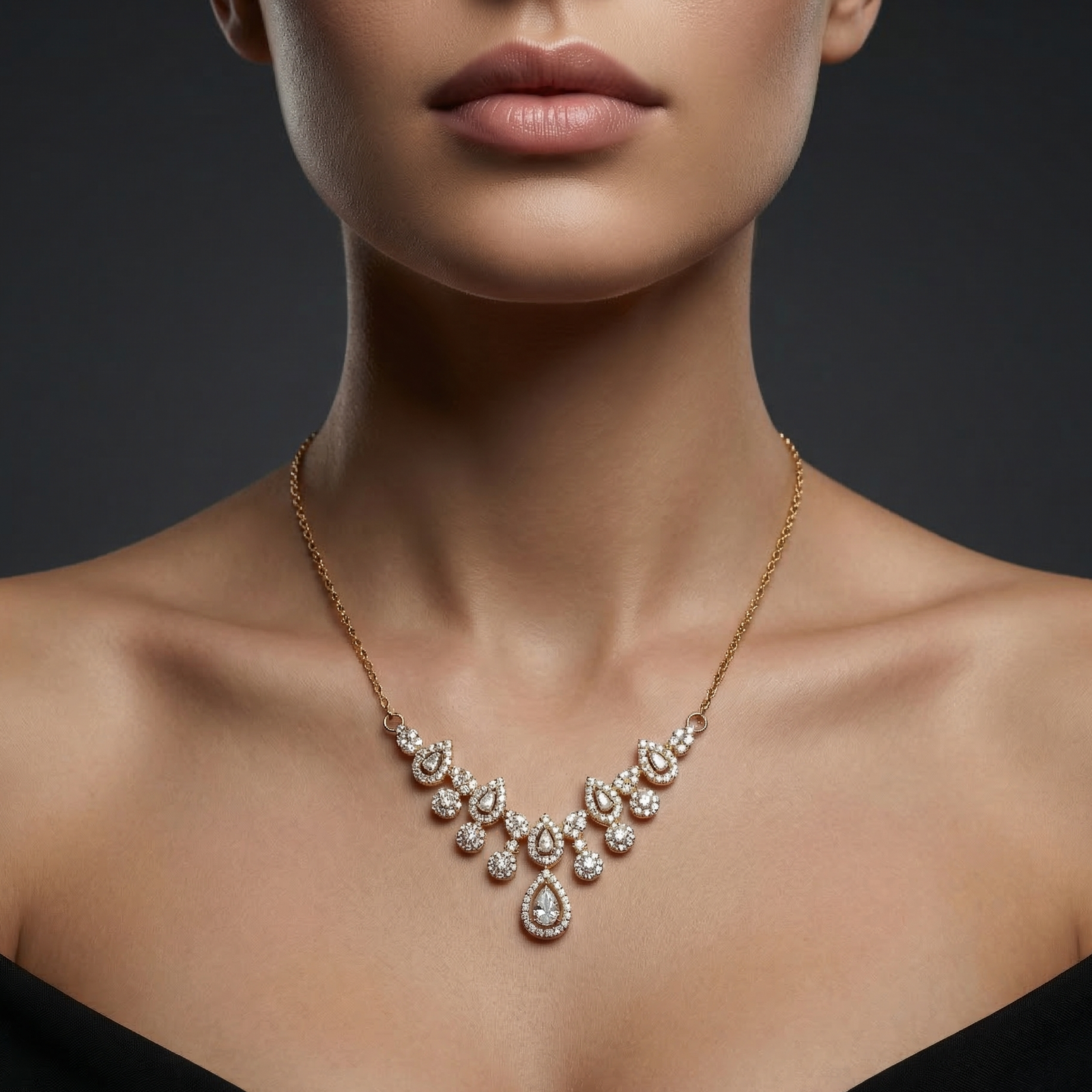 Exquisite Teardrop Halo Semi-Necklace