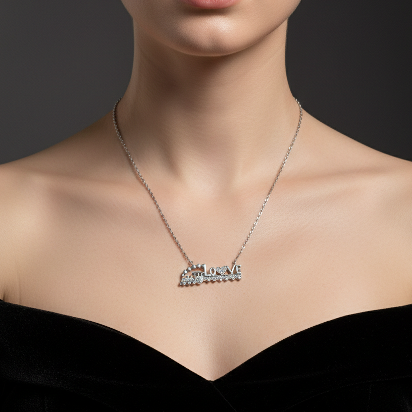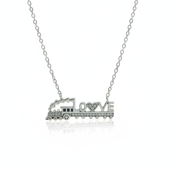Journey of Love – 925 Sterling Silver Train Pendant Necklace