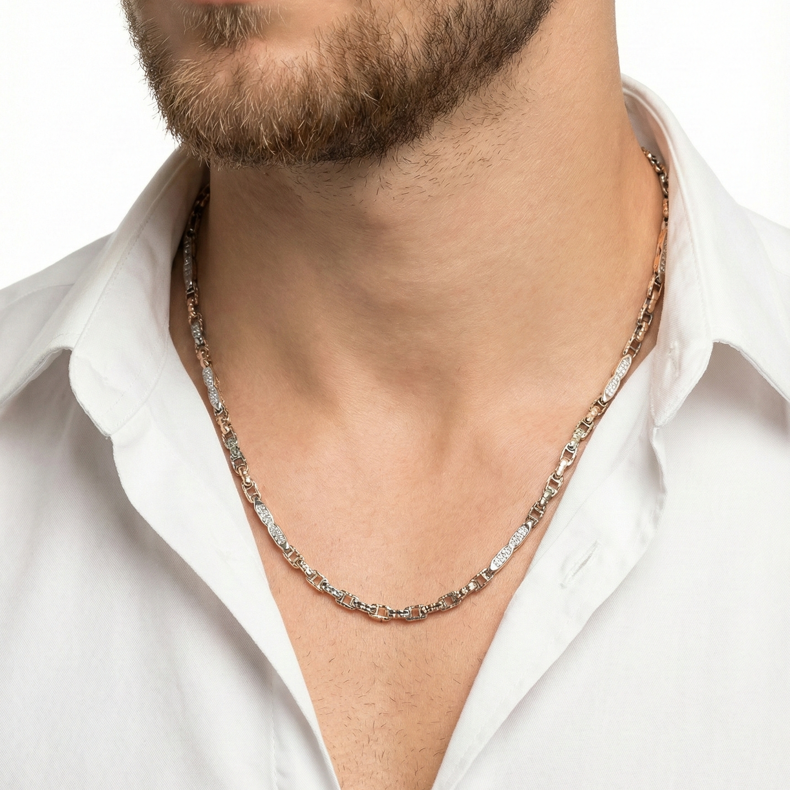 Sophisticated Bi-Tone Textured Link Chain