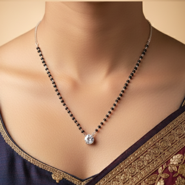 Material and Purity: This mangalsutra is crafted from high-quality 92.5% pure sterling silver, ensuring durability and a lasting shine. It is often rhodium plated to prevent tarnishing and maintain its luster.