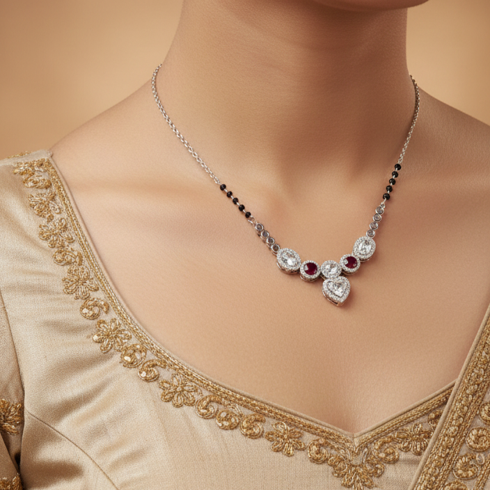 Material and Purity: This mangalsutra is crafted from high-quality 92.5% pure sterling silver, ensuring durability and a lasting shine. It is often rhodium plated to prevent tarnishing and maintain its luster.