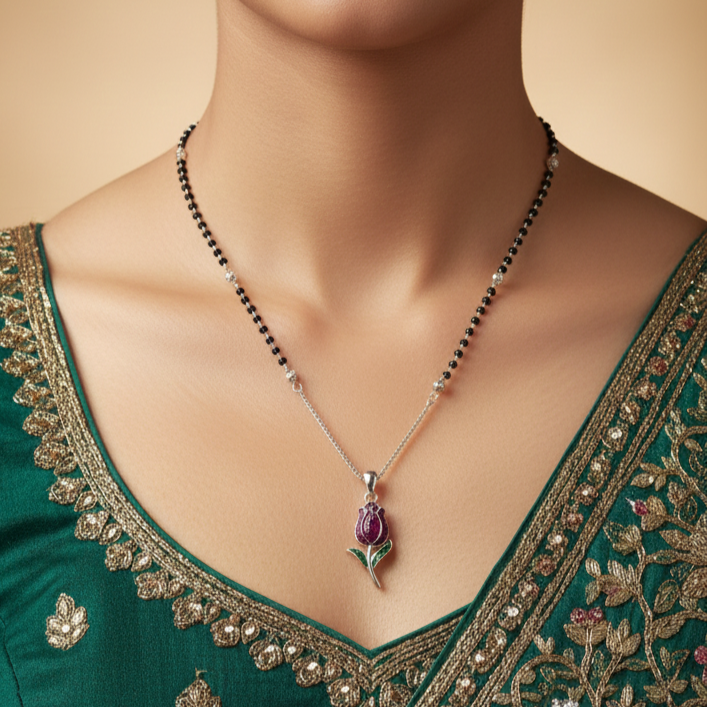 Material and Purity: This mangalsutra is crafted from high-quality 92.5% pure sterling silver, ensuring durability and a lasting shine. It is often rhodium plated to prevent tarnishing and maintain its luster.