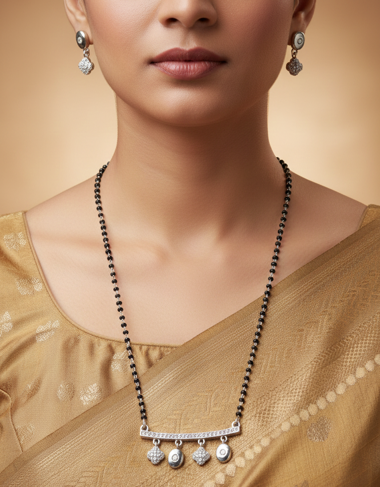 Material and Purity: This mangalsutra is crafted from high-quality 92.5% pure sterling silver, ensuring durability and a lasting shine. It is often rhodium plated to prevent tarnishing and maintain its luster.