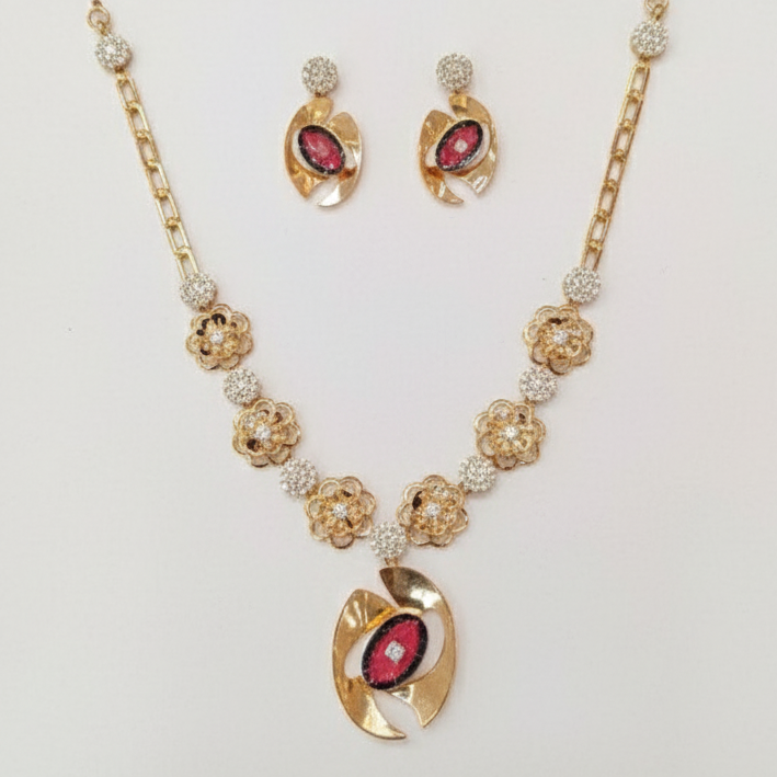 Elevate your traditional grace with our Radiant Bloom Necklace Set. Meticulously crafted from high-quality 925 Sterling Silver and finished with a rich rose gold plating, this set blends contemporary floral artistry with timeless regal charm. Featuring intricate filigree work, it is designed for the woman who loves to make a sophisticated statement.