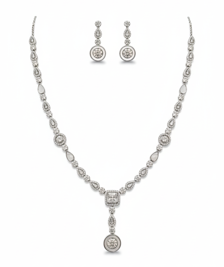 Elevate your jewelry collection with this exquisite handcrafted set, designed for the woman who appreciates sophisticated sparkle. Crafted from premium 925 Sterling Silver, this set features a brilliant Y-shaped necklace and matching drop earrings that capture the light from every angle.